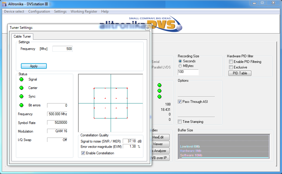 DVSStation3/4/IP: Alitronika devices are supported by DVSStation3, DVSStation4 or DVSStationIP, Alitronika's FREE Transport Stream Player, Recorder, Analyser and converter application software. Please refer to the specification and User Manual of these applications for more information. Even better please download them from our website and try them out. They works in DEMO mode without any Alitronika devices.Record Screen